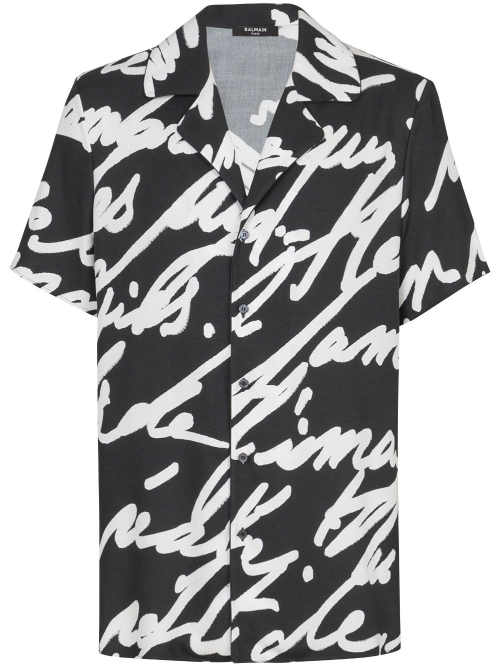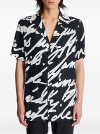 slogan-print shirt Highlights - Black/white - Slogan print - Front button fastening - Notched collar - Short sleeves - Straight hem Made in Italy Composition Viscose 100%