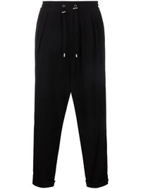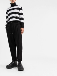 slouchy crepe tapered-leg track pants Balmain's slouchy crepe trousers form part of the label's SS22 collection. Fabricated in Italy, they feature silver-tone hardware with subtle logo engraving. Made in Italy Composition Viscose 100% SIZE & FIT Model measurements Height 6 ft 2 in(1.88 m) Bust/Chest 36.22 in(92 cm) Hips 38.58 in(98 cm) Waist 29.52 in(75 cm) Washing instructions Dry Clean Only