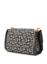 small 1945 Heritage monogram jacquard bag Balmain is here to make your day. This small 1945 Heritage bag will add the finishing touch to your favourite look. The monogram jacquard makes it clear who your favourite brand is. Highlights - Black/white - Calf leather - Gold-tone hardware - Jacquard logo motif - Monogram pattern - Embossed logo to the front - Foldover top - Chain-link shoulder strap - Internal card slot Made in Italy Composition Outer: Calf Leather 100%, Fabric 100% SIZE & FIT Model measurements Height 5 ft 10 in(1.77 m) Bust/Chest 31.88 in(81 cm) Hips 34.25 in(87 cm) Waist 24.8 in(63 cm)