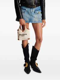 mini B-Army Grocery tote bag Named after Balmain’s legion of followers, this B-Army Grocery bag is crafted to a compact shopping silhouette from durable canvas with black logo embroidery across the front. A detachable leather cardholder helps save on storage space. Highlights - Light beige/cognac brown - Canvas - Leather trim - Embroidered logo to the front - Detachable shoulder strap - Two flat top handles - Strap and press-stud fastening - Main compartment - Internal zip-fastening pocket Made in Italy Composition Lining: Linen/Flax 100% Outer: CALFSKIN 100%, Canvas 100% SIZE & FIT Measurement DEPTH 2.36 in(6 cm) HANDLE 4.33 in(11 cm) HEIGHT 6.29 in(16 cm) STRAP 24.01 in(61 cm) WIDTH 7.87 in(20 cm)
