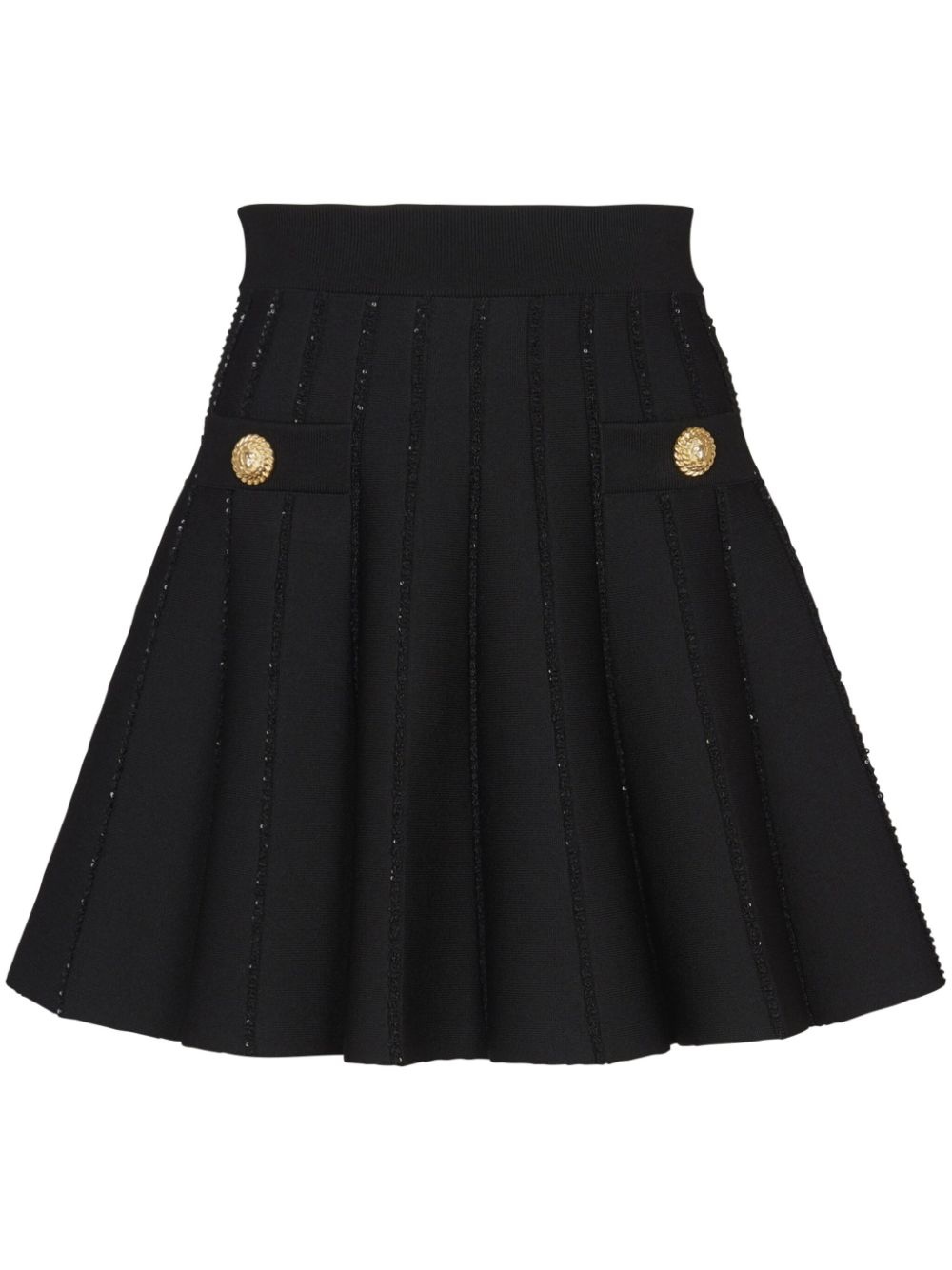 sparkly stripes skirt Highlights - Black - Sequin embellishment - Logo-engraved buttons - Rear zip fastening - Flared skirt - High-waisted Made in Italy Composition Viscose 100%
