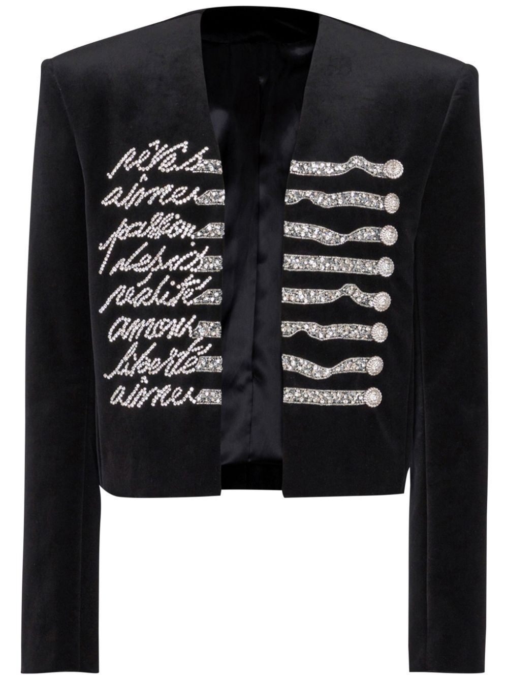Cropped velvet jacket with "Love Letter" embroidery
