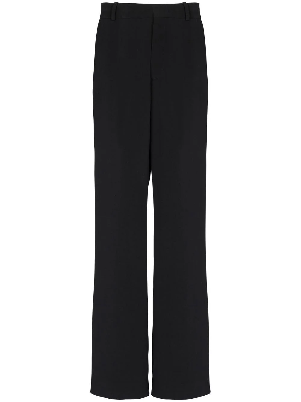 straight-leg tailored trousers Highlights - Jet black - Straight-leg - Belt loops - Concealed front fastening - Two side inset pockets Imported Composition Viscose 100%