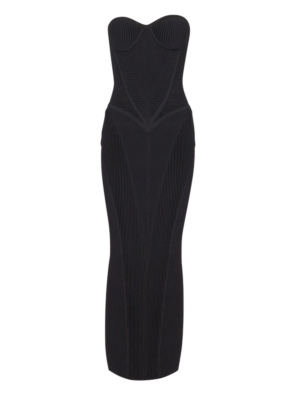 strapless midi dress Highlights - Black - Rear zip fastening - Bustier-style neckline - Strapless Made in Italy Composition Viscose 83%, Polyester 15%, Polyamide 2%