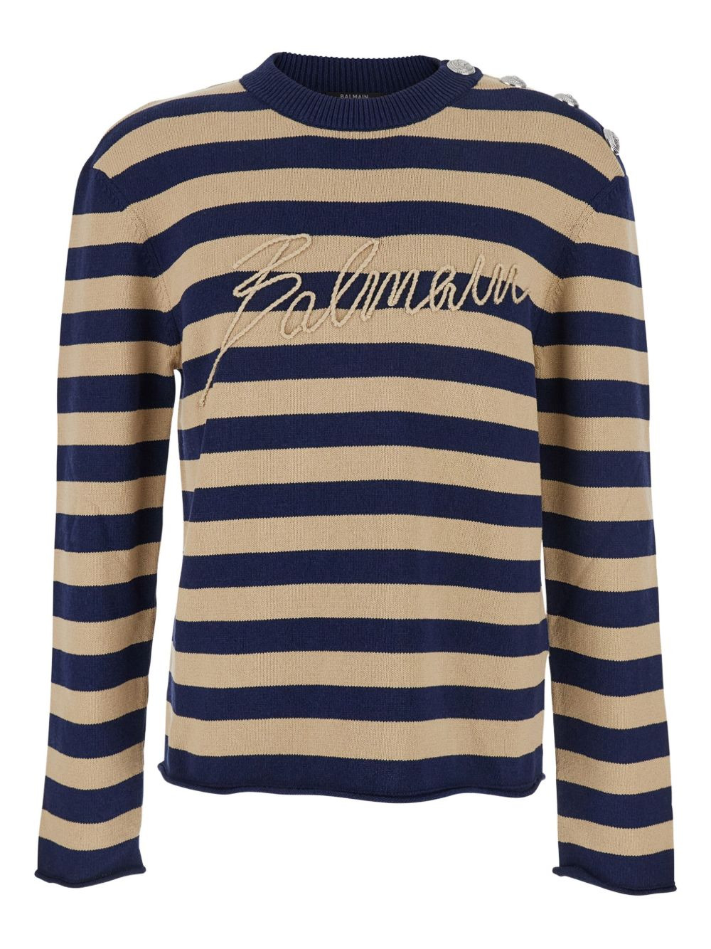 Navy & Beige 'Balmain' Logo Marinière Sweater