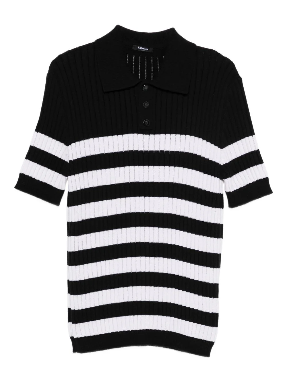 striped-pattern polo shirt Highlights - Black - Striped pattern - Ribbed knit - Polo collar - Button fastening - Short sleeves Made in France Composition Cotton 88%, Polyester 12% SIZE & FIT Model measurements Height 6 ft 1 in(1.85 m) Bust/Chest 35.82 in(91 cm) Hips 37.79 in(96 cm) Waist 29.13 in(74 cm) Washing instructions Dry Clean Only