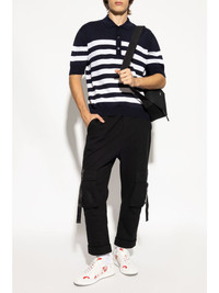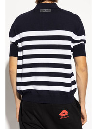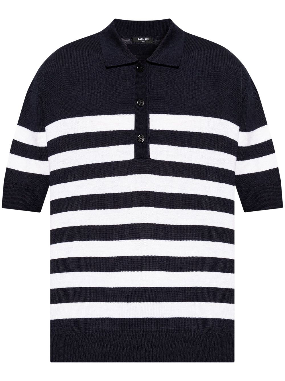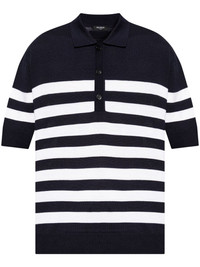 striped polo shirt Highlights - Navy blue/white - Wool - Fine knit - Horizontal stripe pattern - Front button placket - Polo collar - Short sleeves - Logo patch to the rear - Straight hem Made in Italy Composition Wool 100%