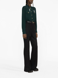 striped wool-blend flared trousers Balmain’s wool-blend trousers are a glitzy take on classic tailoring. They’re cut to a flared silhouette and enhanced with metallic lurex stripes. Highlights - Black - Virgin wool blend - Lurex detailing - Vertical stripe pattern - High-waisted - Concealed front fastening - Belt loops - Flared Imported Composition Outer: Virgin Wool 98%, Polyamide 1%, Polyester 1% Lining: Viscose 52%, Cotton 48% SIZE & FIT Model measurements Height 5 ft 10 in(1.79 m) Bust/Chest 31.1 in(79 cm) Hips 35.03 in(89 cm) Waist 24.01 in(61 cm) Measurement HIPS 37.79 in(96 cm) WAIST 27.55 in(70 cm) FittingInformation Designed with a flared hem, these trousers allow for a close fit at the waist with a slim fit over the leg and widening towards the hem Made from a midweight non-stretch fabric This piece fits true to size – take your usual size