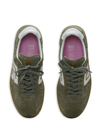 Swan suede sneakers Highlights - Khaki - Calf leather - Suede - Jacquard logo motif - Gold-tone logo lettering - Logo plaque - Logo-print tongue - Branded heel counter - Round toe - Front lace-up fastening - Branded insole - Rubber sole Imported Composition Leather 100%