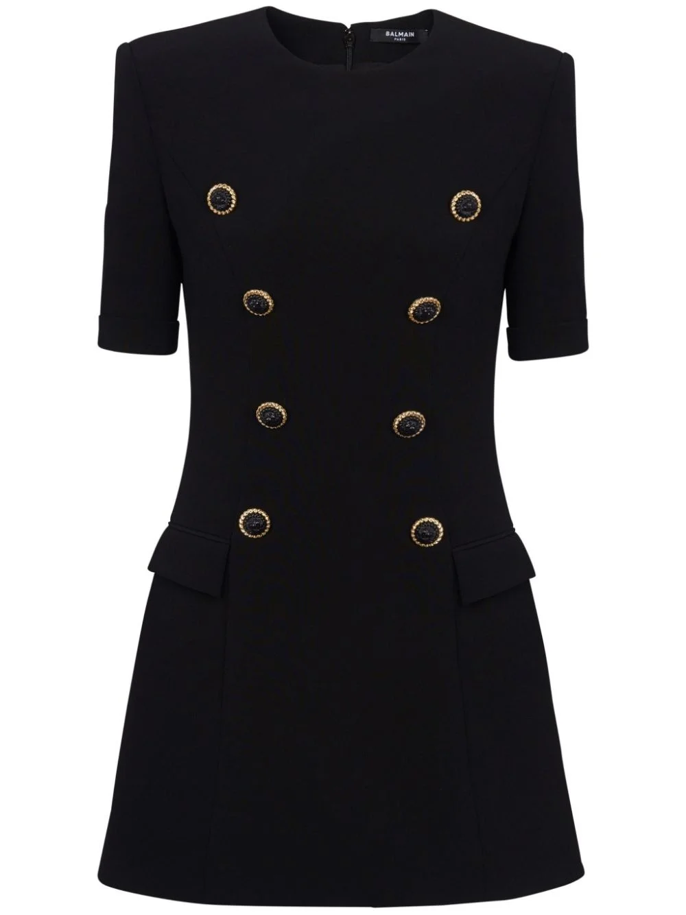 tailored textured minidress Highlights - Black - Textured finish - Tailored design - Decorative button detailing - Round neck - Concealed rear zip fastening - Shoulder pads - Short sleeves - Turn-up cuffs - Fitted waistline - Straight hem - Thigh-length - Two front flap pockets - Full lining Imported Composition Viscose 100% SIZE & FIT Measurement SLEEVE LENGTH 12.2 in(31 cm) HIPS 41.73 in(106 cm) LENGTH 33.85 in(86 cm) WAIST 33.07 in(84 cm) Washing instructions Specialist Cleaning