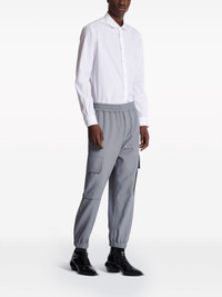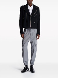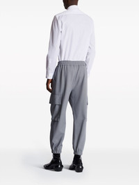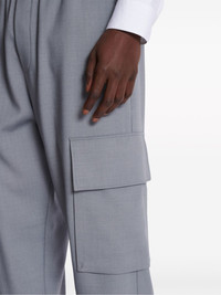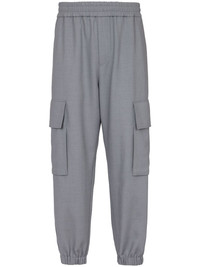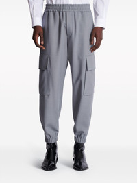 tapered-leg cargo trousers Highlights - Medium grey - Tapered leg - Mid-rise - Elasticated waistband - Two diagonal pockets to the sides - Two side cargo pockets - Elasticated ankles Imported Composition Viscose 57%, Virgin Wool 39%, Elastane 4%
