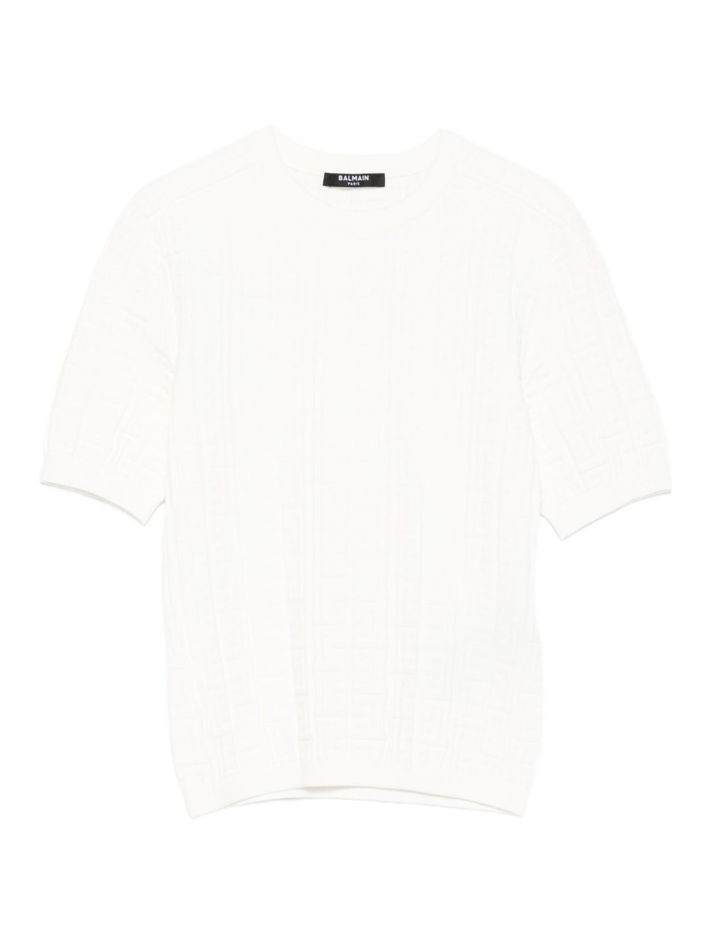 textured short-sleeve t-shirt Highlights - White - Short sleeves - Textured - Round neck Made in Italy Composition Viscose 67%, Polyester 33% Washing instructions Dry Clean Only