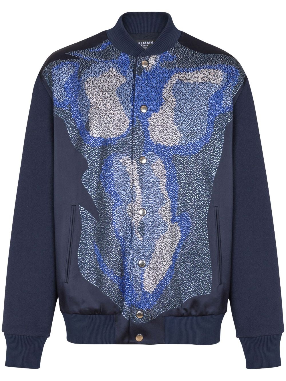 trompe l'oeil-print jacket Highlights - Navy blue - Virgin wool - Trompe l'oeil print - Rhinestone embellishment - Press-stud fastening - Baseball collar - Long sleeves - Ribbed cuffs - Two side welt pockets - Logo print to the rear - Ribbed hem Imported Composition Virgin Wool 100%