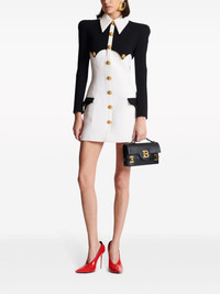 buttoned crepe minidress Highlights - Black/white - Virgin wool - Layered effect - Fitted waistline - Rear zip fastening - Oversized pointed collar - Embossed gold-tone buttons - Shoulder pads - Long sleeves - Two front flap pockets - Straight hem - Thigh-length Imported Composition Virgin Wool 100% Washing instructions Read Manufacturer Guidelines