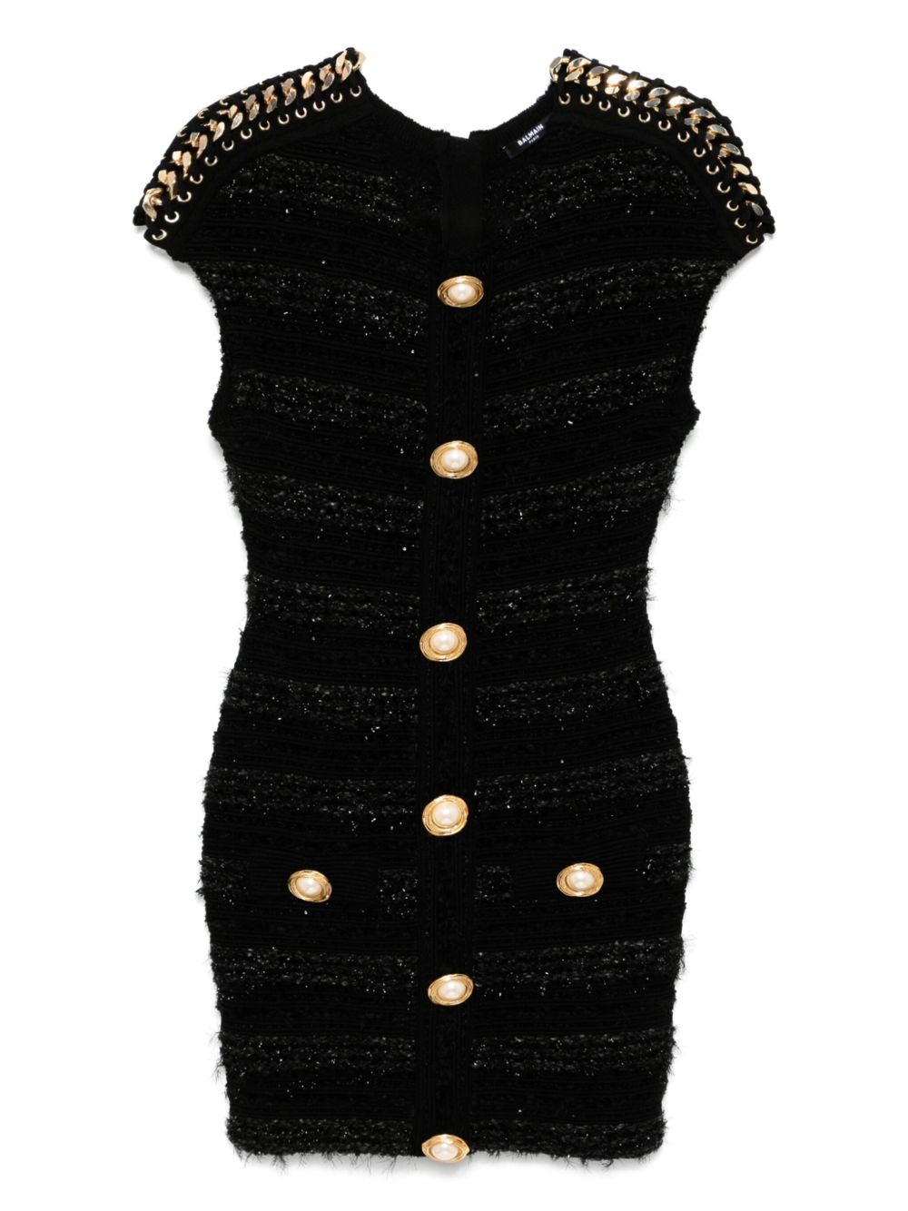 tweed dress Highlights - Black - Rear zip fastening - Cap sleeves Made in France Composition Outer: Viscose 60%, Polyester 14%, Polyamide 13%, Polyurethane 5%, Cotton 5%, Linen/Flax 2%, Wool 1% SIZE & FIT Model measurements Height 5 ft 10 in(1.78 m) Bust/Chest 29.92 in(76 cm) Hips 34.64 in(88 cm) Waist 24.8 in(63 cm) FittingInformation Designed for a slim fit that sits just away from the body offering a close yet comfortable fit Made from a heavyweight non-stretch fabric Washing instructions Dry Clean Only