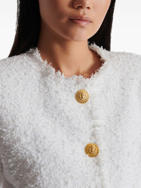 tweed jacket Highlights - White - Tweed - Textured finish - Concealed press-stud fastening - Collarless - Shoulder pads - Crop sleeves with buttoned cuffs - Two front button-fastening jetted pockets - Frayed hem Imported Composition Outer: Polyamide 100% Lining: Fabric 100%