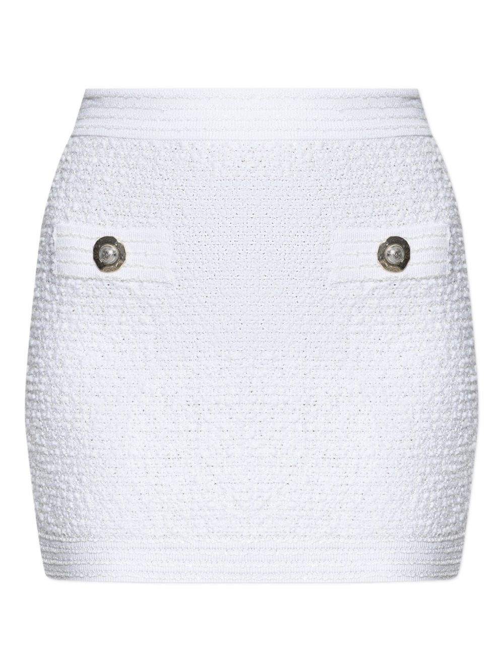tweed mini skirt Highlights - White - Decorative button detailing - Faux-pocket detailing - Tonal stitching - High waist Made in France Composition Viscose 40%, Polyamide 35%, Cotton 24%, Elastane 1% Washing instructions Read Manufacturer Guidelines