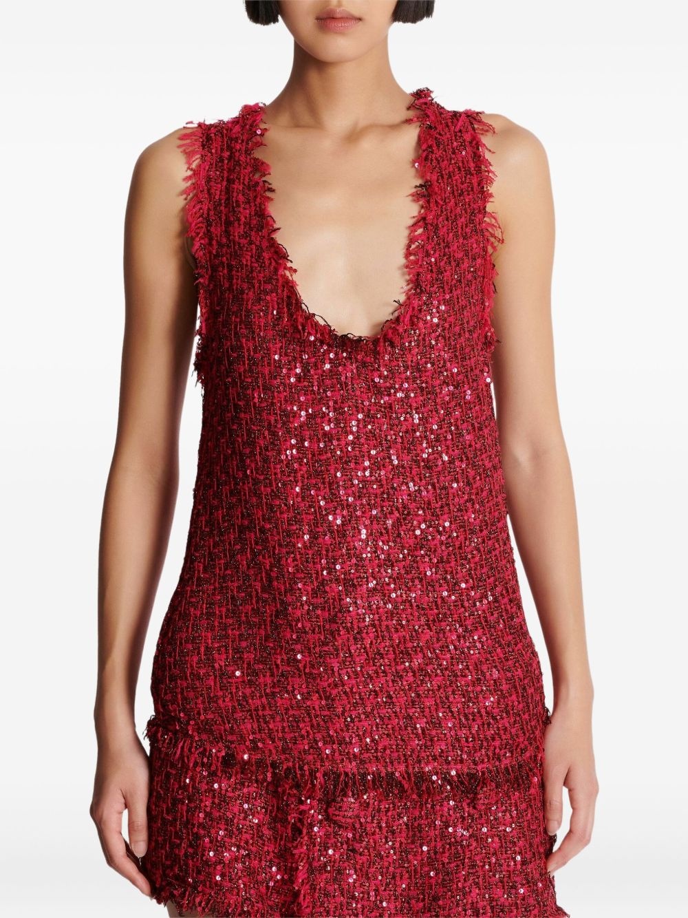 tweed top Highlights - Deep pink - Glitter detailing - Scoop neck - Sleeveless - Frayed detailing Imported Composition Polyester 71%, Viscose 13%, Polyamide 9%, Metallized Polyester 7% Washing instructions Specialist Cleaning