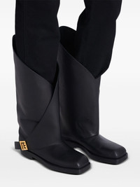 Twist flat leather boots Highlights - Black - Slip-on style - Square toe - Wraparound style - Flat sole Made in Italy Composition Lining: Calf Leather 100% Outer: CALFSKIN 100% Sole: Rubber 100%
