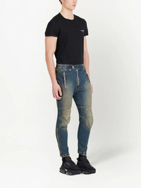 two-tone skinny jeans black/grey two-tone design mid-rise front button and zip fastening two side zip-fastening pockets two rear zip-fastening pockets skinny cut zip details ankle-length Made in Italy Composition Cotton 98%, Spandex/Elastane 2%
