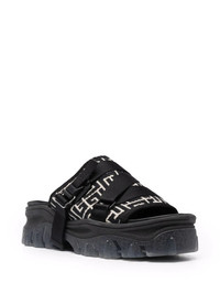 Ulysse monogram slides black/white leather monogram pattern decorative buckle detailing slip-on style open toe chunky rubber sole Imported Composition Sole: Rubber 100% Outer: Fabric 100% Lining: Calf Leather 100%