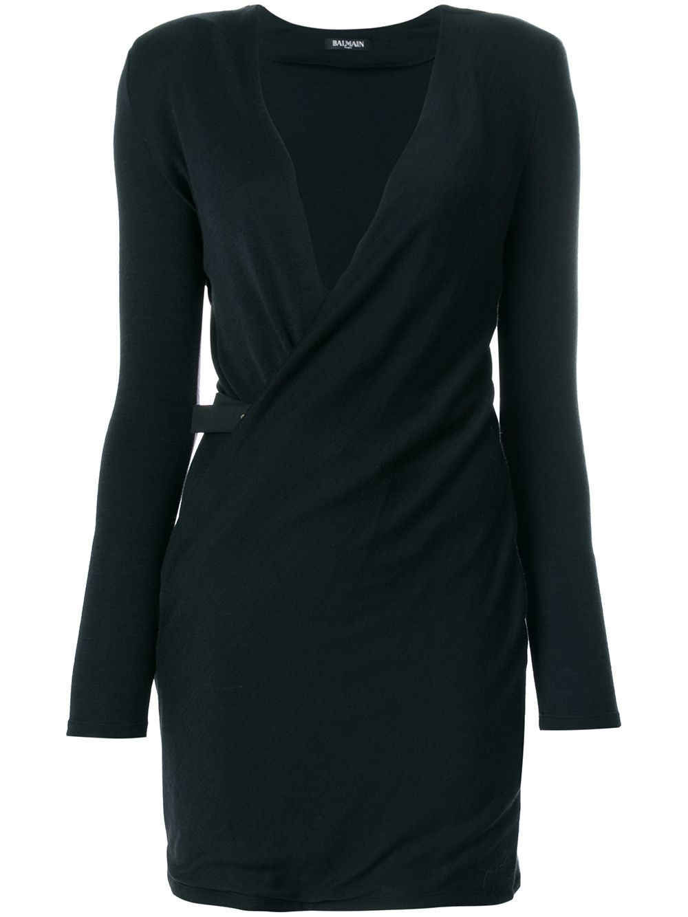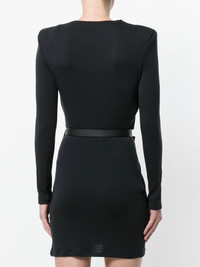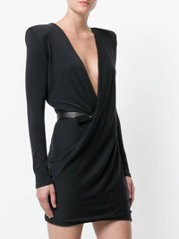 v-neck crossover dress Olivier Rousteing continues his evolution of Balmain’s classic styles into the brand’s AW17 collection and beyond. Equal amounts decorative, daring and refined, these garments are an elevation of Parisian craftsmanship. Crafted from calf leather and a wool blend, this v-neck crossover dress from Balmain features a v-neck, a belted waist, long sleeves, a short length and a straight hem. Made in France Composition Calf Leather 100%, Virgin Wool 75%, Polyamide 25% SIZE & FIT Model measurements Height 5 ft 10 in(1.77 m) Bust/Chest 32.67 in(83 cm) Hips 35.03 in(89 cm) Waist 24.4 in(62 cm) Washing instructions Dry Clean Only