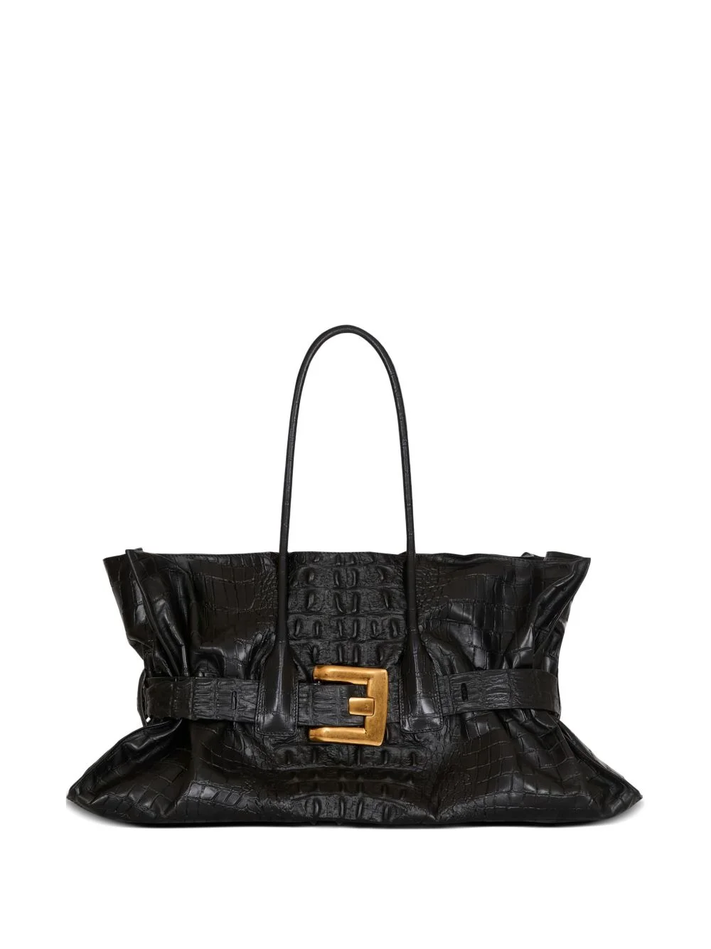 XL Anthem embossed-crocodile buckle tote bag Highlights - Black - Embossed-crocodile - Large buckle fastening - Top handles - Gathered detailing - Calfskin leather Made in Italy Composition Outer: CALFSKIN 100% Lining: Suede 100% SIZE & FIT Measurement DEPTH 7.87 in(20 cm) HEIGHT 11.81 in(30 cm) WIDTH 22.04 in(56 cm) Washing instructions Specialist Cleaning