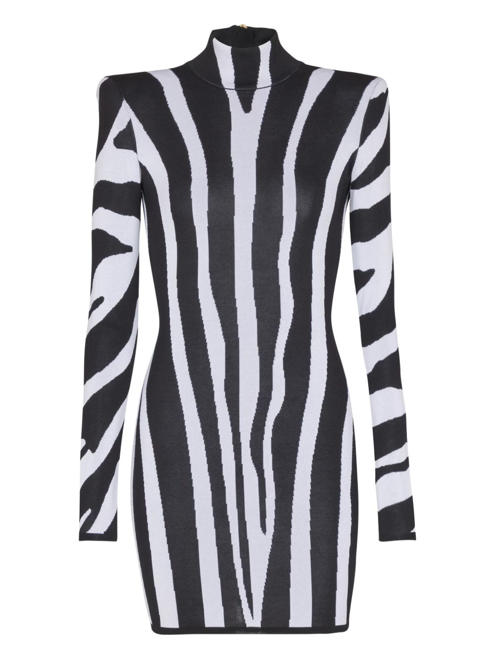 zebra-intarsia high-neck mini dress