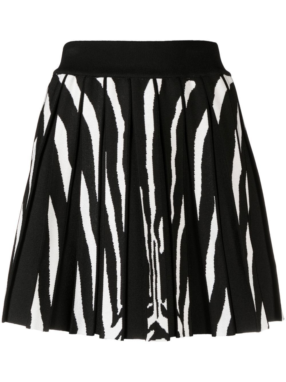 zebra jacquard miniskirt Balmain presents a playful aesthetic with this miniskirt. The classic A-line silhouette is detailed with zebra-patterned jacquard throughout for an eye-catching finish. Made in France Composition Viscose 85%, Polyamide 15% SIZE & FIT Model measurements Height 5 ft 10 in(1.78 m) Bust/Chest 29.92 in(76 cm) Hips 34.64 in(88 cm) Waist 23.62 in(60 cm) FittingInformation This piece fits true to size. We recommend you get your regular size Designed for a loose fit with a close fit at the waist Made with a mid-weight non-stretch fabric Washing instructions Hand Wash
