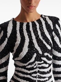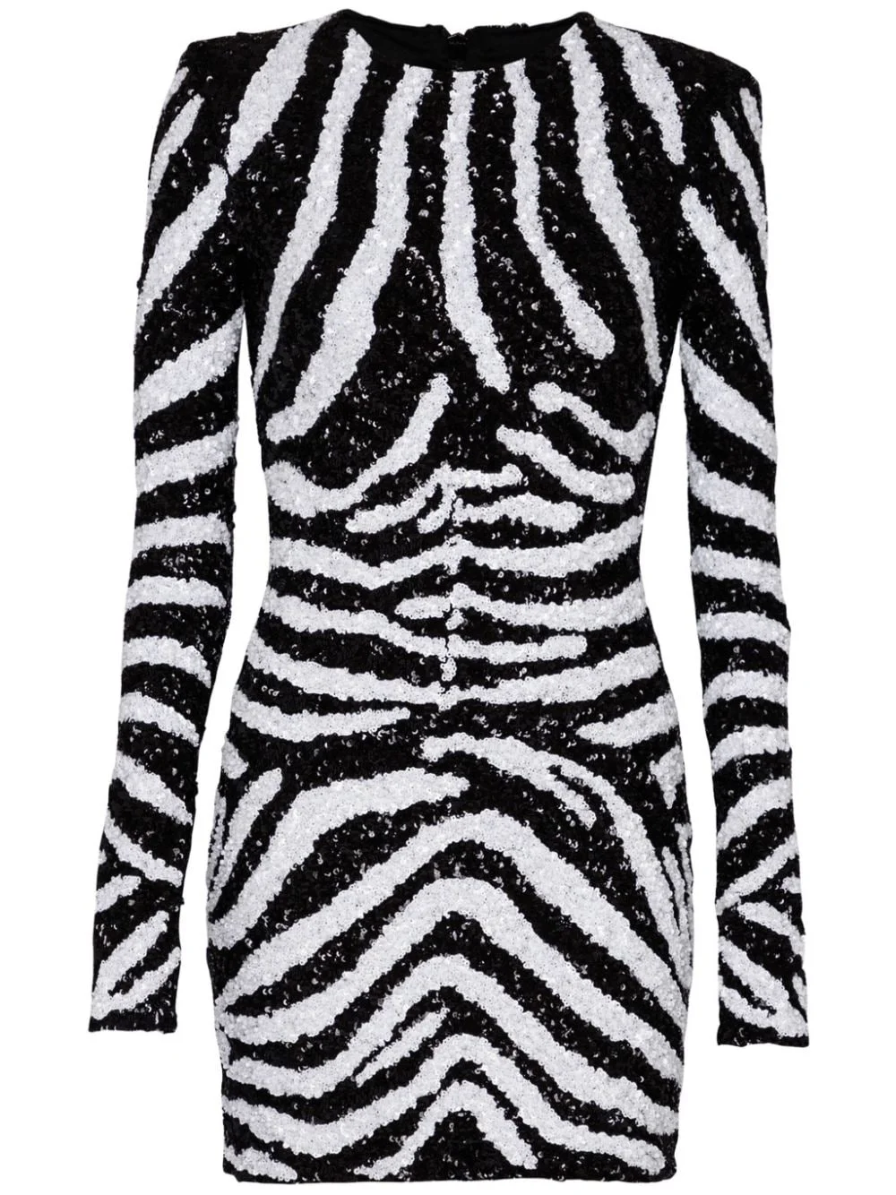 zebra-pattern sequin-embellished dress Highlights - Black/white - Sequin design - Zebra pattern - Shoulder pads - Crew neck - Rear zip fastening - Long sleeves - Thigh-length - Straight hem Made in Italy Composition Polyamide 66%, Elastane 34%