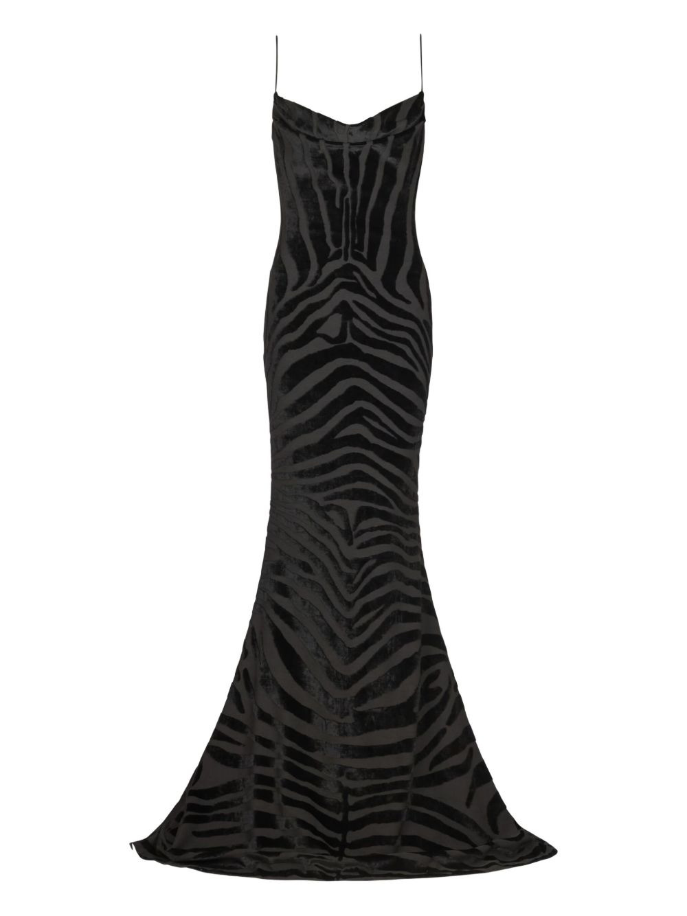 zebra-print maxi dress Highlights - Black - Zebra print - Cowl neck - Spaghetti straps - Velvet texture - Concealed zip fastening Imported Composition Viscose 70%, Polyester 30% Washing instructions Read Manufacturer Guidelines