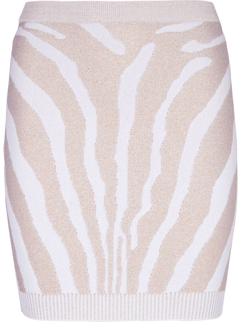 zebra intarsia-knit miniskirt Highlights - Beige/white - Knitted construction - Animal print - Slip-on style - Thigh-length Made in Italy Composition Body: Viscose 69%, Polyamide 17%, Polyester 14% SIZE & FIT FittingInformation This mini-length skirt is intended to be worn high on the waist Made from a midweight fabric