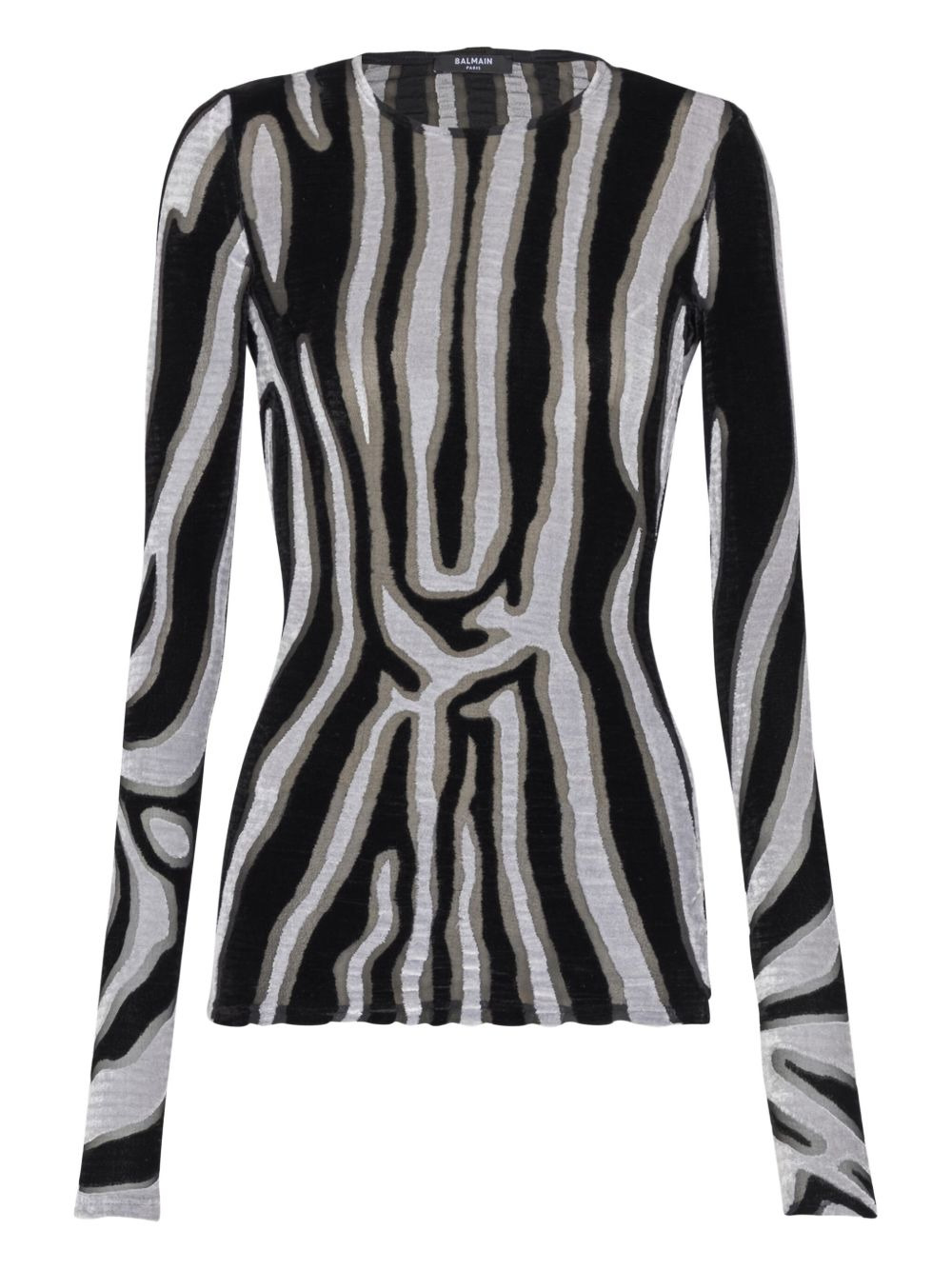 zebra-print top Highlights - Black - Zebra print - Long sleeves - Round neck Imported Composition Viscose 89%, Elastane 11% Washing instructions Read Manufacturer Guidelines