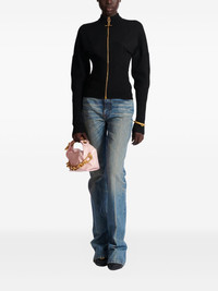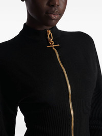 zipped knit cardigan Highlights - Black - Ribbed knit - Gold-tone zip fastening - High neck - Long sleeves - Shoulder pads Made in Italy Composition Viscose 84%, Polyester 16% Washing instructions Read Manufacturer Guidelines