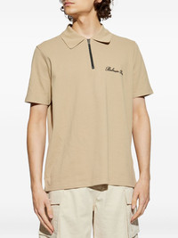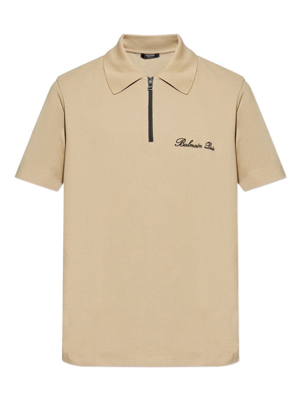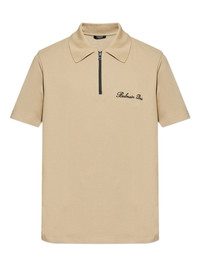 zipped polo shirt Highlights - Beige - Zip fastening - Embroidered logo detail - Short sleeves - Polo collar Imported Composition Cotton 100%