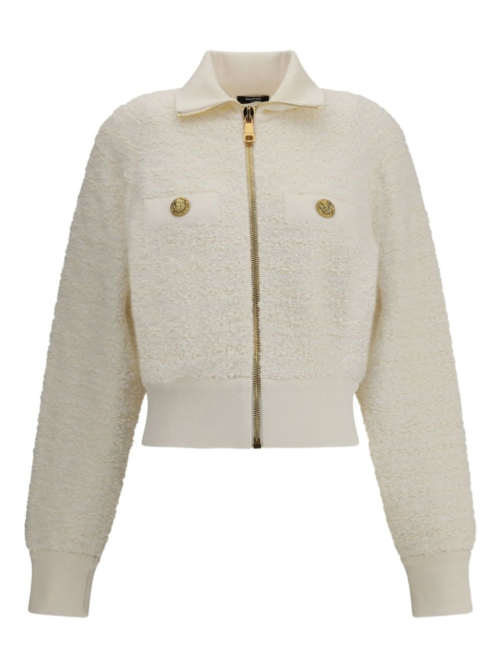 zipped tweed bomber Highlights - White - Tweed knit - Two pockets - Gold-tone hardware - Zip fastening Imported Composition Viscose 55%, Hemp 13%, Polyamide 10%, Wool 8%, Cotton 8%, Polyester 6% Washing instructions Read Manufacturer Guidelines