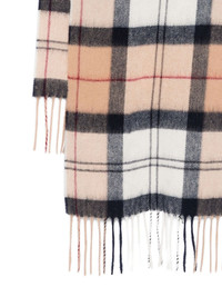 check-fringe scarf Highlights - Beige - Check pattern - Fringe trim - Wool blend Imported Composition Lambs Wool 95%, Cashmere 5% SIZE & FIT Measurement LENGTH 76.77 in(195 cm) WIDTH 9.84 in(25 cm) Washing instructions Dry Clean Only