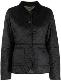 Deveron quilted jacket Renowned for their waxed cotton jackets, British brand Barbour presents outerwear with a focus on heritage and craftsmanship. This Deveron jacket features the label’s signature corduroy collar for a timeless and classic look, while its construction boasts diamond-quilting throughout which allows the matching logo embroidery to stand out. Highlights - Olive black - Diamond-quilted detailing - Embroidered logo to the side - Corduroy collar - Long sleeves - Logo-engraved buttons - Front press-stud fastening - Two front patch pockets Imported Composition Outer: Polyamide 100% Lining: Polyester 100% SIZE & FIT Model measurements Height 5 ft 11 in(1.8 m) Bust/Chest 31.49 in(80 cm) Hips 35.43 in(90 cm) Waist 24.4 in(62 cm) FittingInformation Designed for a slim fit that sits just away from the body offering a close yet comfortable fit Made from a quilted non-stretch fabric, giving it no natural elasticity This piece fits true to size – take your usual size Washing instructions Machine Wash