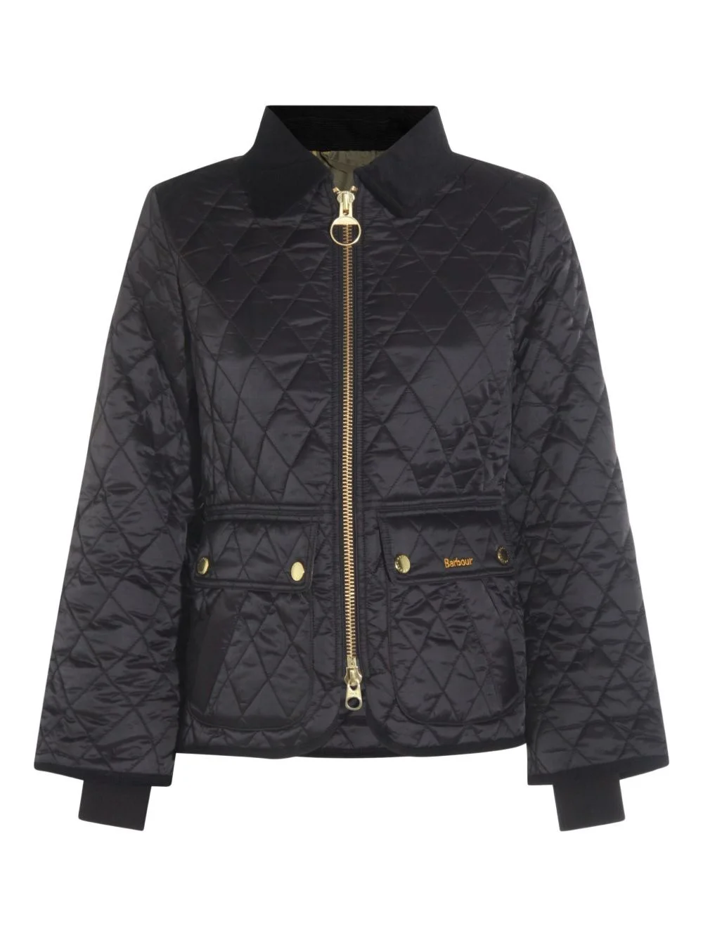diamond-quilted zip-front coat Highlights - Black - Diamond quilting - Zip fastening - Gold-tone hardware - Corduroy collar - Welt pockets Imported Composition Polyamide 100% Washing instructions Read Manufacturer Guidelines