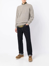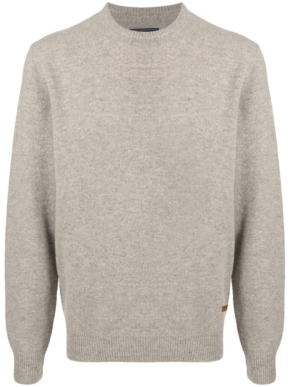 Essential Patch crewneck jumper stone grey merino wool knitted construction ribbed trim crew neck long sleeves elbow patches straight hem Imported Composition Outer: Merino 100% SIZE & FIT Model measurements Height 6 ft 2 in(1.87 m) Bust/Chest 34.25 in(87 cm) Hips 36.22 in(92 cm) Waist 29.52 in(75 cm) FittingInformation This piece fits true to size. We recommend you get your regular size Cut for a loose fit Made with a mid-weight fabric Washing instructions Hand Wash