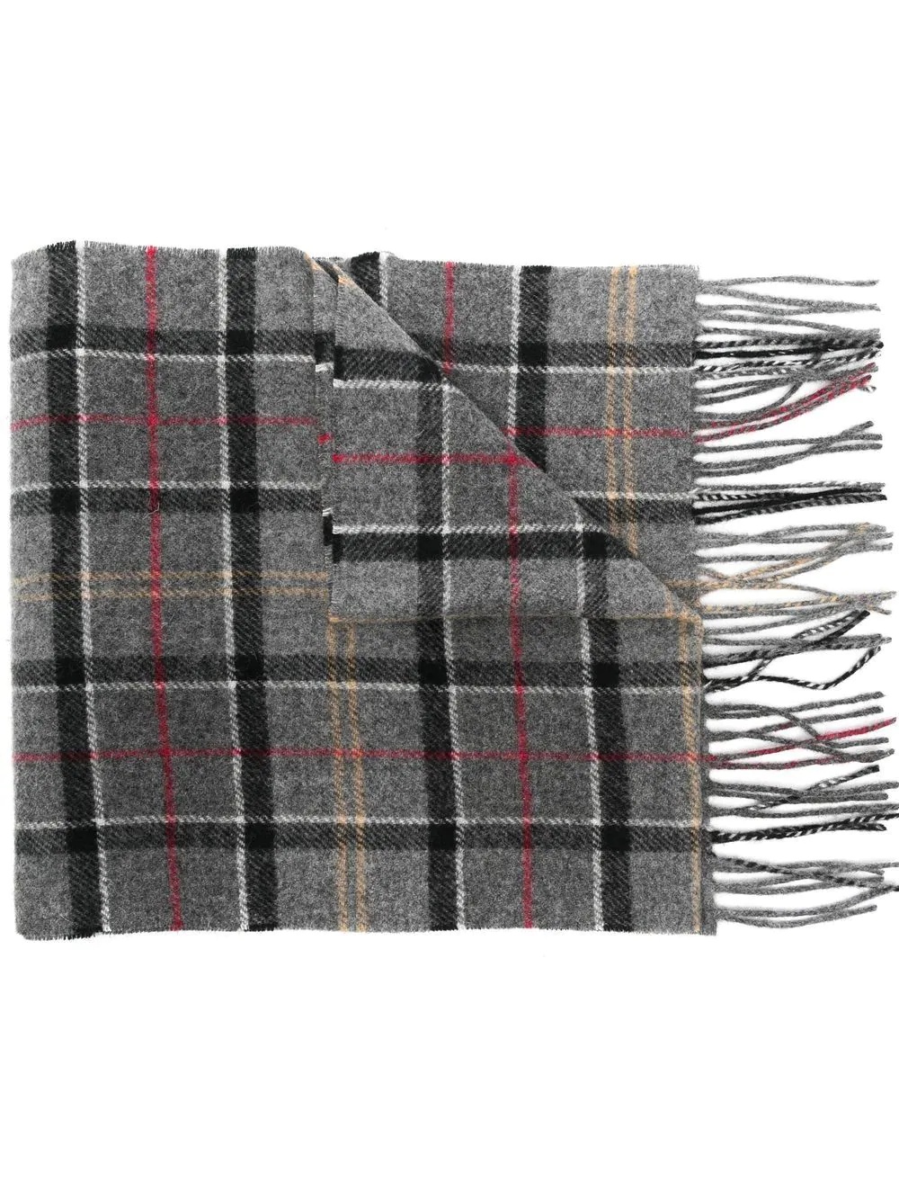 fringed tartan lambswool scarf grey/multicolour lambs wool knitted construction tartan check pattern fringed edge straight hem Made In United Kingdom Composition Wool 100% SIZE & FIT Measurement LENGTH 78.74 in(200 cm) WIDTH 11.02 in(28 cm) Washing instructions Dry Clean Only