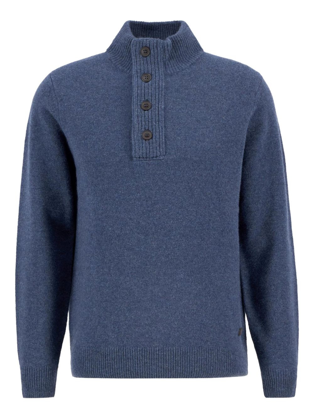 high-neck elbow-patch sweater Highlights - Blue - High neck - Button placket - Elbow patches - Long sleeves - Ribbed cuffs Imported Composition Wool 100% Washing instructions Read Manufacturer Guidelines