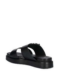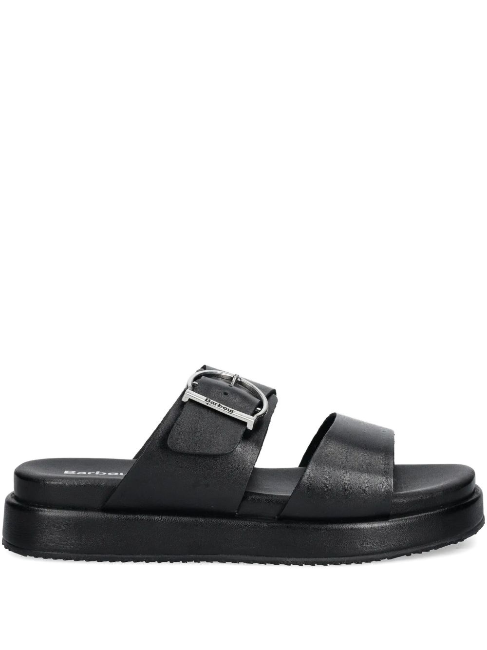 leather slides Highlights - Black - Side buckle fastening - Round open toe - Rubber sole Imported Composition Outer: Leather 100% Lining: Leather 100% Sole: Rubber 100%
