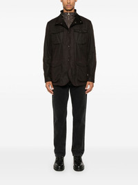 Ogston Waxed cotton jacket Highlights - Cedar brown - Cotton - Wax coated - Front press-stud and zip fastening - Stand-up collar - Long sleeves - Elbow patches - Four front flap pockets - Embroidered logo to the side - Central rear vent - Full lining - Straight hem Imported Composition Lining: Polyester 100%, Cotton 100% Outer: Cotton 100%, Polyamide 100%, Wool 100%, Leather 100% SIZE & FIT Model measurements Height 6 ft 2 in(1.87 m) Bust/Chest 38.18 in(97 cm) Hips 36.61 in(93 cm) Waist 29.13 in(74 cm) FittingInformation Designed for a regular fit, allowing for a comfortably loose fit throughout the body The vented hem offers movement at the rear Made from a midweight non-stretch fabric Washing instructions Do Not Wash/Do Not Dry Clean