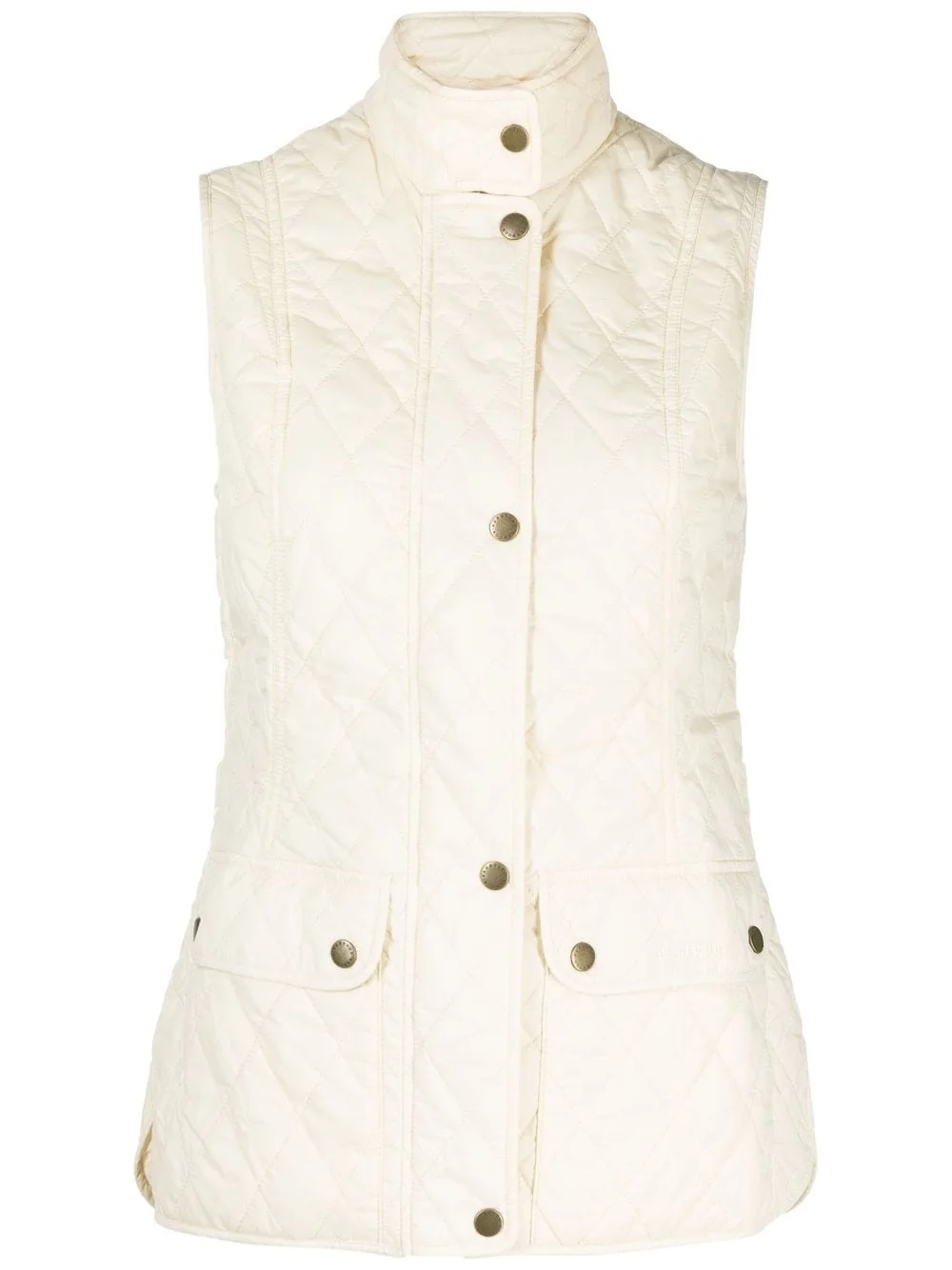 Otterburn quilted gilet Barbour’s quilted Otterburn gilet is designed with transitional months in mind – the stand collar and storm flap provide customisable coverage. It’s finished with a curved hem complete with adjustable tabs for easy layering. Highlights - Cream white - Padded design - Quilted - High neck - Front button fastening - Sleeveless - Two side button-fastening pockets - Straight hem Imported Composition Outer: Polyamide 100% Lining: Polyester 100% SIZE & FIT Model measurements Height 5 ft 10 in(1.79 m) Bust/Chest 31.1 in(79 cm) Hips 35.03 in(89 cm) Waist 24.01 in(61 cm) FittingInformation The adjustable tabs allow for fitted preferences