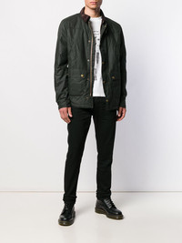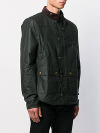 Reelin wax-coated jacket Endure gale force winds, Earth-shattering thunder, blinding lightning storms...or just the weather event that is everyday life. Either way, this Reelin jacket from Barbour has you covered, literally. Layer up and look good. Highlights - Black - Cotton-blend - Spread collar - Front press-stud fastening - Long sleeves - Two front flap pockets Imported Composition Outer: Cotton 100% Lining: Polyamide 100% SIZE & FIT Model measurements Height 6 ft 2 in(1.89 m) Bust/Chest 36.22 in(92 cm) Hips 35.82 in(91 cm) Waist 28.74 in(73 cm) FittingInformation This piece fits true to size. We recommend you get your regular size Cut for a loose fit Made with a mid-weight non-stretch fabric Washing instructions Dry Clean Only