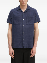 revere-collar pocket shirt Highlights - Navy blue - Textured weave - Revere collar - Short sleeves - Chest pockets - Button fastening Imported Composition Cotton 100% Washing instructions Machine Wash