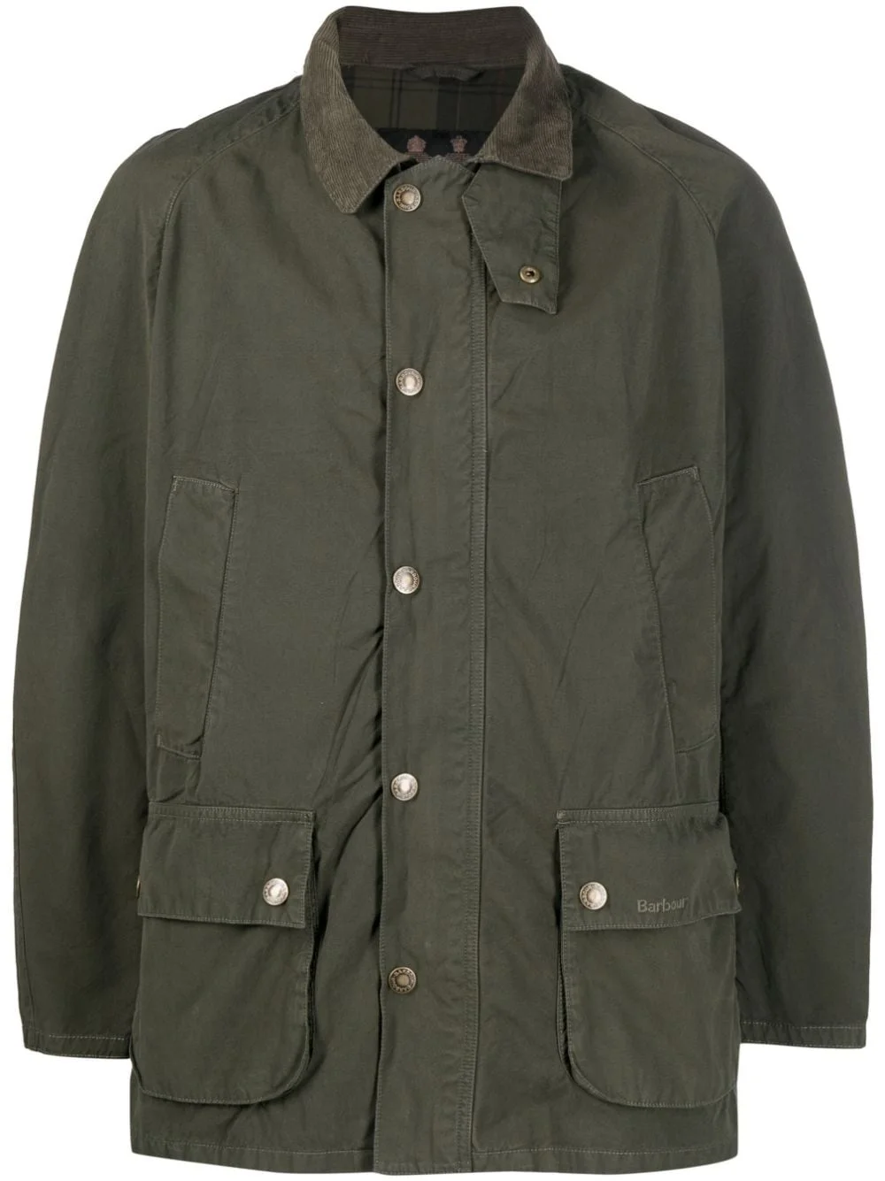 spread-collar shirt jacket Highlights - Khaki - Cotton - Embossed logo to the front - Spread collar - Front button fastening - Two side inset pockets - Two front flap pockets - Long sleeves - Straight hem Imported Composition Outer: Cotton 100% Lining: Cotton 100% Washing instructions Machine Wash