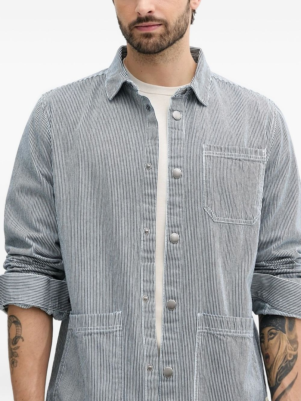 stripe-detail work shirt Highlights - Light blue - Vertical stripes - Button fastening - Patch pockets - Long sleeves - Buttoned cuffs Imported Composition Cotton 100% Washing instructions Read Manufacturer Guidelines