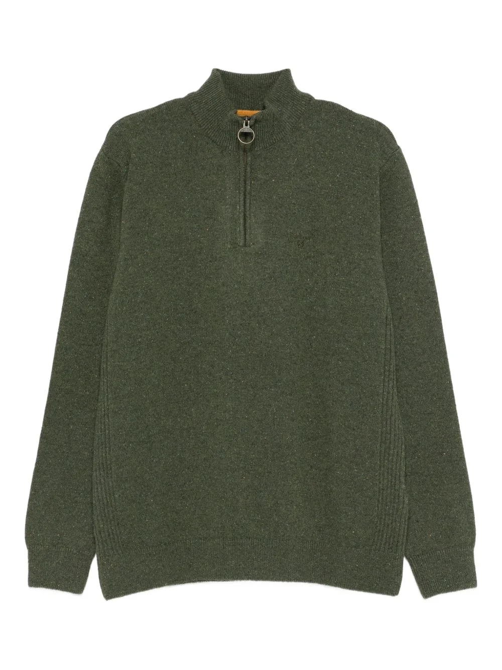 zip-up sweater Highlights - Forest green - Ribbed detailing - Quarter zip fastening - High neck - Long sleeves - Embroidered logo Imported Composition Wool 60%, Polyamide 24%, Viscose 8%, Silk 8% SIZE & FIT Model measurements Height 6 ft 3 in(1.9 m) Bust/Chest 35.43 in(90 cm) Hips 35.82 in(91 cm) Waist 27.95 in(71 cm) FittingInformation Designed for a regular fit, offering a comfortable loose fit throughout the body The ribbed hem offers a close, comfortable fit Made with a midweight knit, this piece offers some stretch